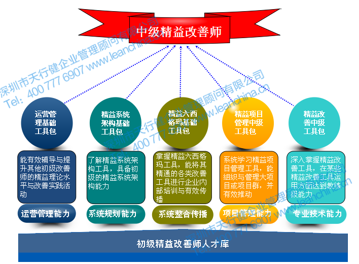 經(jīng)過天行健公司系統(tǒng)培訓和認證的中級精益改善師不僅承擔著企業(yè)精益改善活動的深入推動重任,也承擔著企業(yè)精益系統(tǒng)架構(gòu)的基礎(chǔ)構(gòu)建工作。因此,中級精益改善師是企業(yè)內(nèi)部精益活動推動的脊梁,將發(fā)揮重要的精益系統(tǒng)設(shè)計、精益改善深入、精益系統(tǒng)傳播的重要作用。